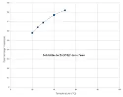 | Masse molaire[1] | 415,19 ± 0,02 g/mol I 61,13 %, O 23,12 %, Zn 15,75 %, |