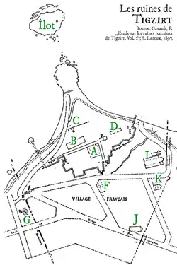 - ↑ Gavault P. Étude sur les ruines romaines de Tigzirt. E. Leroux; 1897 ; p. 6.