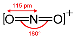 L'ion nitronium est isoélectronique avec le dioxyde de carbone et, comme ce composé, a une structure linéaire : l'enchainement O=N=O forme un angle de 180° (voir la théorie VSEPR).
