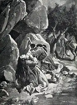 Remigius, jaloux de la passion de Britald, prépare une tisane qui met Irène en transe et entraîne une grossesse nerveuse. Pour ce fait, elle est expulsée du monastère et Britald, jaloux et qui a eu connaissance de l'incident, engage un soldat qui se déguise en une vieille vagabonde et la tue avec son épée.