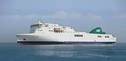 | Oscar Wilde[9] | 2008-2019 | Rosslare – Roscoff/Cherbourg | 166,26 m | 1 458 | 22 nœuds | 1987 | Navigue actuellement pour le compte de la compagnie italienne Grandi Navi Veloci sous le nom de GNV Allegra |