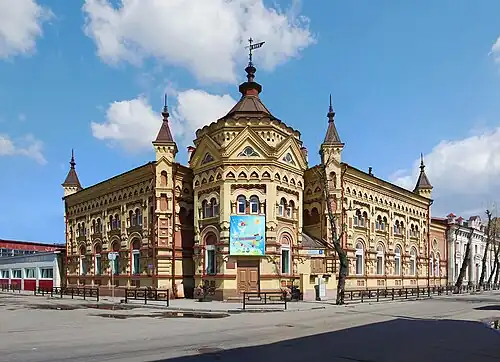 En 1879, la ville subit un grand incendie, qui détruit la plus grande partie de la ville qui comptait alors 33 000 habitants. Le gouverneur force alors les habitants à reconstruire en pierre, faisant naître l'architecture d'Irkoutsk, fortement inspiré du baroque sibérien et des édifices survivants tels que l'église de l'Élévation-de-la-Croix et la cathédrale de l'Épiphanie. Des monuments importants apparaissent alors, avec l'église Prince Vladimir ou le théâtre dramatique d'Irkoutsk. Grâce à son architecture, on la surnomme alors le « petit Paris de la Sibérie »[3], et son centre historique est inscrit à la liste indicative du patrimoine mondial de l'Unesco depuis 1998.