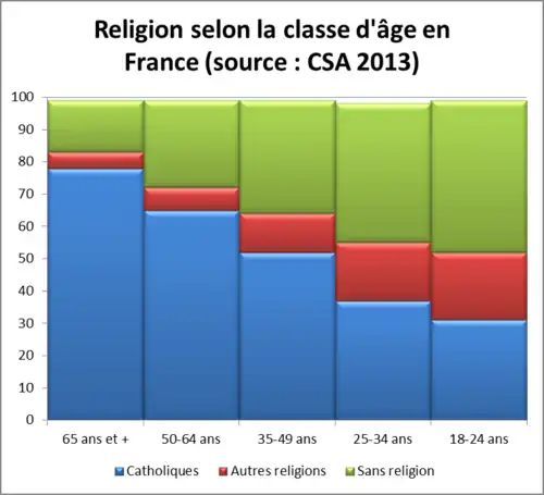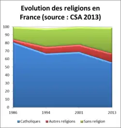 D'après une étude publiée en 2013 par CSA, les personnes se disant « sans religion » pourraient être majoritaires en France d'ici 20 à 30 ans[9].