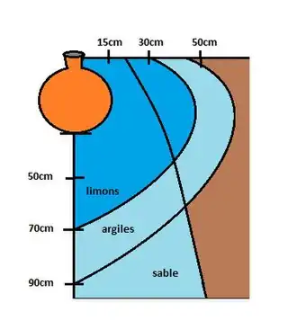 - ↑ (en) A.A. Siyal, T.H. Skaggs, « Measured and simulated soil wetting patterns under porous clay pipe sub-surface irrigation - », Agricultural water management, Volume 96, Issue 6, , p. 893–904.