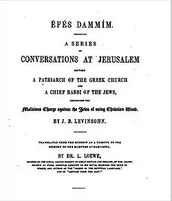 - (en): Éfés dammîm: a series of conversations at Jerusalem between a patriarch of the Greek church and a chief rabbi of the Jews, concerning the malicious charge against the Jews of using Christian blood; traduction en anglais : Louis Loewe; éditeur: Nabu Press; ; (ISBN 1177904624 et 978-1177904629)