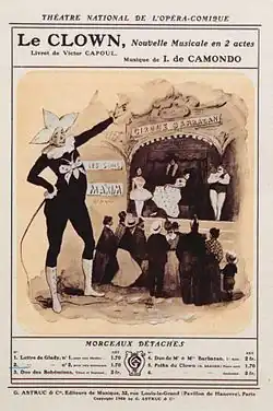 Certaines de ses chansons et pièces instrumentales ont été jouées en 1904 dans la salle Érard[8]. Son œuvre la plus connue est l’opéra Le Clown sur un livret de Victor Capoul, dont la première a eu lieu en 1906 avec la soprano américaine Geraldine Farrar au Nouveau Théâtre à Paris[8]. Cet opéra a connu d’autres représentations en 1908, ainsi qu’à l’Opéra-Comique et à Marseille en 1909[8], puis en 1910 à Vichy[8], en 1911 à Anvers et en 1912 à Cologne[11].