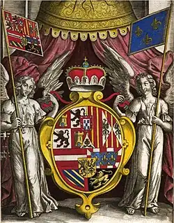 « Isabelle-Claire-Eugénie par la grâce de Dieu infante de tous les Royaumes d'Espagne, Duchesse de Bourgogne, de Lothier, de Brabant, de Limbourg et de Luxembourg, comtesse de Flandre, d'Artois, de Bourgogne Palatine, de Hainaut, de Hollande, de Zélande, de Namur, de Zutphen, marquise du Saint-Empire, Dame de Frise, de Salins, de Malines, des pays et cités d'Utrecht et de Groninge[3]. »