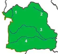 Le Mékong forme une grande partie de la frontière entre la Thaïlande et le Laos au nord et à l'est d'Isan, alors que le sud est limité par le Cambodge. Le principal affluent thaïlandais du Mékong est la Mun, qui prend sa source dans le parc national de Khao Yai près de Nakhon Ratchasima coule vers l'est et se jette dans le Mékong dans la province d'Ubon Ratchathani. L'autre cours d'eau important est la rivière Chi, un affluent de la Mun qui coule au centre de la région avant de tourner vers le sud pour la rejoindre dans la province de Si Saket. La Loei et la Songkhram, plus petites, sont aussi des affluents du Mékong, la première coulant vers le nord dans la province de Loei et la seconde vers l'est dans les provinces d'Udon Thani, Sakon Nakhon, Nakhon Phanom et Nong Khai.