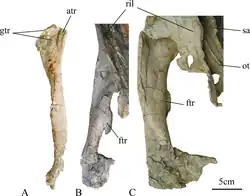 L'holotype ZCDM V0016 a été découvert à Kugou, une localité de la province chinoise du Shandong qui présente des couches du groupe Wangshi du Crétacé supérieur, datant peut-être du Campanien supérieur ou du Maastrichtien inférieur. Il fait partie de la collection du musée des dinosaures de Zhucheng et représente un spécimen incomplet et partiellement articulé comprenant l'ensemble du sacrum, quelques tendons ossifiés, les deux moitiés du bassin, les quinze vertèbres caudales les plus antérieures dans une série articulée et le fémur droit, un tibia et un péroné[1].