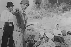 Ishirō Honda sur le tournage de La Perle bleue (en) avec de vraies pêcheuses de perles.