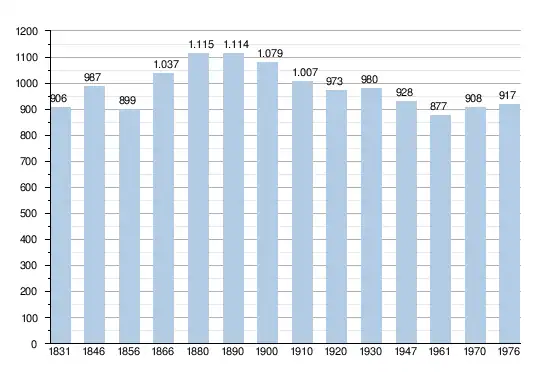 - Sources : INS, Rem. : 1831 jusqu'en 1970 = recensements, 1976 = nombre d'habitants au 31 décembre.