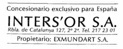 - Inters'or S.A. : filiale de Exmundart basée à Barcelone (Rambla de Catalunya 127, 2° 2°) qui distribuait et exposait des œuvres produites par Exmundart. En 1982 y étaient exposées 5 sculptures de Dali, la plupart en bronze, dont certaines plaquées or 24 carats[20] : "Alma del Quijote" , "Madonna de Port lligat" , "San Narcisso de las Moscas" , "Mujer Desnuda Subiendo la escalera" , et "Triton Alado". Ces dernières ont été tirées à 300 exemplaires fournies avec un certificat de la société mère Exmundart.