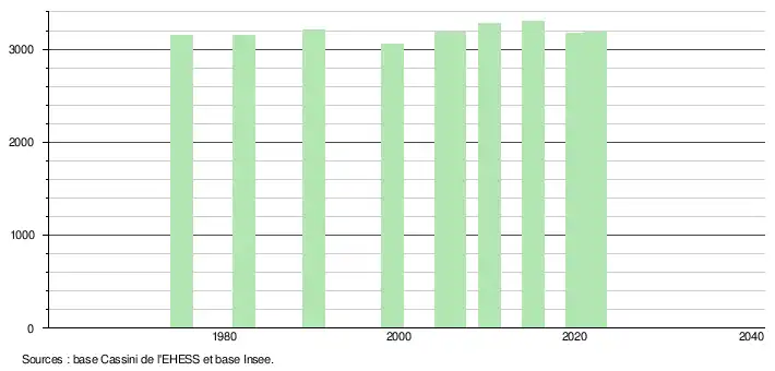 L'évolution du nombre d'habitants est connue à travers les recensements de la population effectués dans la commune depuis 1975. Pour les communes de moins de 10 000 habitants, une enquête de recensement portant sur toute la population est réalisée tous les cinq ans, les populations de référence des années intermédiaires étant quant à elles estimées par interpolation ou extrapolation[61]. Pour la commune, le premier recensement exhaustif entrant dans le cadre du nouveau dispositif a été réalisé en 2005[62].