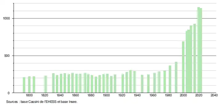 - ↑ Fiches Insee - Populations de référence de la commune pour les années 2006, 2007, 2008, 2009, 2010, 2011, 2012, 2013, 2014, 2015, 2016, 2017, 2018, 2019, 2020, 2021 et 2022.
