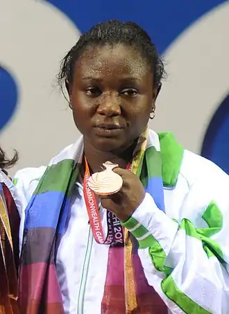 - ↑ (en) Victor Akhidenor, « Itohan wins silver in women’s weightlifting », sur www.cbc.ca, (consulté le )