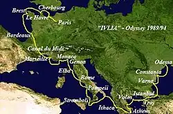 Partant du port d’Odessa et en prenant pour référence les routes maritimes ancestrales utilisées en Mer Noire, en Mer Méditerranée et dans l’Océan Atlantique, la galère Ivlia a parcouru plus de 3 000 milles nautiques en 6 ans (dont 500 à la rame, 1000 à la voile et le reste en remorquage), visité plus de 50 ports européens et terminé son parcours en remontant la Seine jusqu’à Paris[1]. Cette arrivée a donné lieu à une réception offerte, à bord de la galère, par Jacques Chirac, alors maire de Paris et futur président de la République Française.