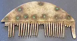 - Le domaine social regroupe les objets liés aux loisirs et activités culturelles. Pour les loisirs, on trouvait de petits pions de jeux de stratégie en ivoire[10]. Les enfants, du moins ceux des familles les plus aisées, pouvaient bénéficier de poupées articulées en ivoire.