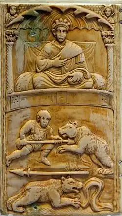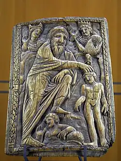 - ↑ Voir l'illustration du feuillet de diptyque représentant le baptême du Christ