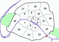 - Paris (Ier, IIe, IIIe, IVe, Ve, VIe, XIe, XIIe et XIIIe ainsi qu’une partie du XIVe, XVIe et du Xe)