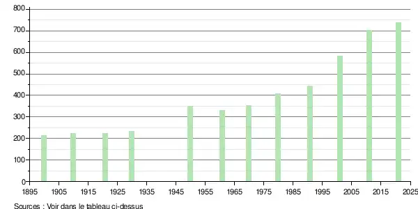 - ↑ Český statistický úřad, Historický lexikon obcí České republiky 1869–2005, vol. I, Prague, Český statistický úřad, 2006, pp. 340-341 ; de 1869 à 1910, les recensements organisés par l'empire d'Autriche-Hongrie sont officiellement datés du 31 décembre de l'année indiquée. — À partir de 2012, population des communes de la Tchéquie au 1er janvier, sur le site de l'Office tchèque de statistique (Český statistický úřad).
