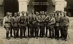 En 1908, Piłsudski transforma ses unités paramilitaires en une « association de lutte active » (Związek Walki Czynnej ou ZWC) dirigée par trois de ses associés, Władysław Sikorski, Marian Kukiel (en) et Kazimierz Sosnkowski[51]. L'un des principaux objectifs de la ZWC était de former des officiers et des sous-officiers pour une future armée polonaise[30]. En 1910, deux organisations paramilitaires furent légalement créées dans la partie austro-hongroise de la Pologne, une à Lwów (en ukrainien : Lviv aujourd'hui en Ukraine) et l'autre à Cracovie, pour assurer des cours de science militaire. Avec la permission des autorités austro-hongroises, Piłsudski fonda une série de « clubs sportifs » appelés Związek Strzelecki Association des fusiliers ») qui servirent de couverture pour entraîner les forces militaires polonaises. En 1912, Piłsudski (utilisant son nom de guerre, Mieczysław) devint commandant-en-chef d'une de ces organisations qui atteignit 12 000 hommes en 1914[15],[51]. En 1914, Piłsudski déclara que « seul le sabre a maintenant une importance dans la balance de la destinée d'une nation[51] ».