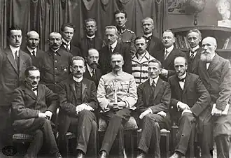 Józef Piłsudski (au centre) avec le commandement suprême de l'Organisation militaire polonaise, 1917.