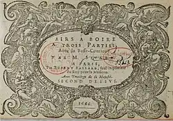 - Dédicace à M. Bruneau sieur de Neufville, Conseiller du Roi, et Auditeur en sa Chambre des comptes. Contient 20 airs à boire à 2 ou 3 voix avec basse continue, ceux qui sont pour 2 voix portent un accompagnement de violon.