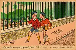 « La « coupe à la J3 » désigne la coiffure portée par un grand nombre d'adolescents à l'époque de la Seconde Guerre mondiale, communément appelée comme ça par rapport à la catégorie sur leurs cartes de rationnement. La coupe à la J3 consiste à plaquer la partie supérieure des cheveux en faisant une tresse à l'arrière, laissant la partie inférieure des cheveux libres. »