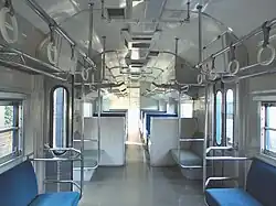- Les vitres latérales étaient originellement fixes, mais en tenant compte de la ventilation pendant les périodes de forte affluence, trois fenêtres de chaque côté de chaque voiture ont été remplacées par des fenêtres qui peuvent être ouvertes. Les fenêtres étaient couvrables par des rideaux à enroulement.