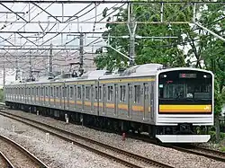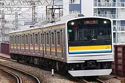 - ↑ anciennes rames E205-0 modifiées par JR-East pour former des rames plus courtes, à utiliser dans les services de banlieue extérieure nécessitant des compositions plus courtes .Elles ont des portes actionnées par les passagers via un bouton.