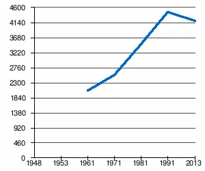 En 1991, sur un total de 12 691 habitants, la population se répartissait de la manière suivante[5] :