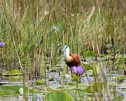 Le Jacana à poitrine dorée ou Jacana d'Afrique est une espèce d'oiseaux de la famille des Jacanidae. C'est la plus grande des deux espèces de jacanas du genre Actophilornis.