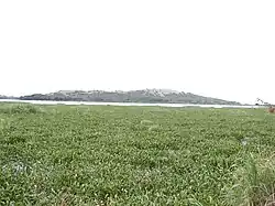 Berge de l'île Ndere étouffée par les jacinthes d'eau, Lac Victoria, Kenya.