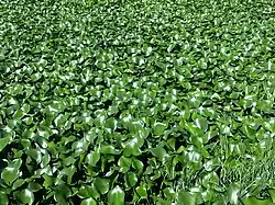 La Jacinthe d'eau, qui ne fait pas partie de la famille de la Jacinthe véritable, est un macrophyte aquatique dont les tiges forment des tapis flottants denses. La croissance de cette plante est une des plus rapides, voire la plus rapide, du règne végétal : les jacinthes d'eau peuvent pousser de 2 à m par jour dans certains sites d'Asie du Sud-Est[3].