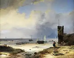 - Personnage près d'un bateau échoué sur la plage, 1844 (mis en vente publique chez Sothebys, Amsterdam, le ) ;