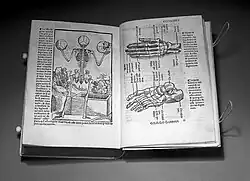 À ce texte imprimé, s'ajoutent des illustrations, car l'anatomie sensible étant celle des choses visibles, elles peuvent être dessinées et gravées sur bois. Il est des formes compliquées, comme celle d'une vertèbre, qui défient toute description verbale et qui ne peuvent se révéler et se mémoriser que par la vision ou le toucher[14].
