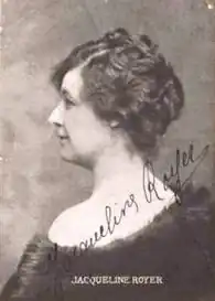Marie Berthe Françoise Royer, dite Jacqueline Royer, née le à Guîtres en Gironde[1] et morte en à Martigues[2], est une artiste lyrique et professeure de chant française, qui a chanté des premiers rôle de contralto et de mezzo-soprano à l'Opéra de Paris, à la Royal Opera House à Londres, au Teatro Colón de Buenos Aires, au Teatro Solis à Montevideo, à l'Opéra de Monte-Carlo, active sur scène à partir de 1904 jusqu'en 1924, elle a créé plusieurs rôles au début du XXe siècle, dont Carmine dans la première posthume de I Mori di Valenza de Ponchielli[3].