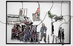 Huile sur plastique, bois, fil de fer (80x60)le plastique est utilisé en association avec la peinture et la toile pour sa transparence, sa luminosité, sa souplesse, ses possibilités de modelage…