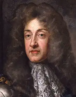 Lorsque sa seconde épouse Marie de Modène donne naissance à un fils, Jacques François Stuart, laissant présager la mise en place d'une dynastie catholique, les nobles anglais demandent l'aide du protestant Guillaume III d'Orange, le neveu de Jacques II[1] qui avait épousé sa cousine, Marie, la fille de Jacques II. Guillaume III débarque en Grande-Bretagne à la tête d'une armée hollandaise et Jacques II est contraint de se réfugier au château de Saint-Germain-en-Laye en France. Le Parlement considère que cette fuite équivaut à une abdication et accorde la couronne à Guillaume et Marie, qui règnent conjointement à partir de 1689 sous les noms de Guillaume III et de Marie II.