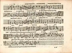 - un caractère de musique de grand corps, utilisé dans ses livres de chœur à partir de 1545 (Guillo 1991 no 122, 5 lignes = 15,5 à 16,5 mm), copié sur le caractère de Valerio Dorico.