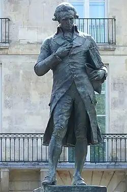- Paris, quai de Conti : Monument à Condorcet, 1894. Le monument est inauguré le , à l'occasion du bicentenaire de la mort de Condorcet. Envoyé à la fonte en 1942 par le régime de Vichy, il est rétabli à l’identique à partir du modèle en plâtre en 1989 dans le cadre des célébrations du bicentenaire de la Révolution française[3].