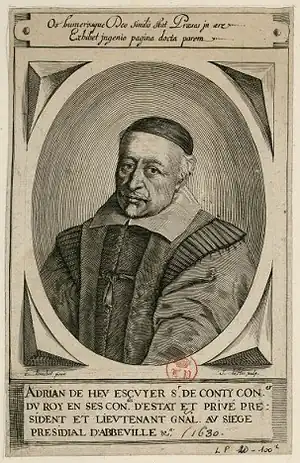 - ↑ Il s'agit probablement de Charles Ier de Rambures, maréchal de camp le 19 mars 1625, chevalier des ordres du roi le 31 décembre 1619, seigneur de Rambures, Dompierre, Hornoy, etc., gouverneur de Doullens et du Crotoy, mort à Paris le 13 janvier 1633. Voir l'inventaire du fonds Rambures aux Archives départementales de la Somme Voir.