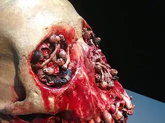 - ↑ La pièce, qui a été brûlée par accident, a été remplacée par une nouvelle version nommée Fucking Hell qui est exposée dans l'un des musées abritant une partie de la collection Pinault, la Punta della Dogana à Venise —voir Destination Venise dans Le Figaro du 18 août 2008.