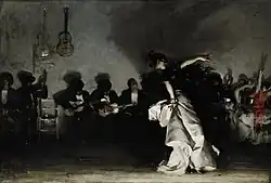 La peinture monumentale de John Singer Sargent, est basée sur des dessins qu'il a réalisés dans le sud de l'Espagne en 1879. Le nom de cette danse andalouse est grossièrement traduite par "le chahut". C'est une peinture que l'on peut entendre aussi bien que voir : des claquements de talons, des claquements de doigts, des claquements de mains, des sons de chants et de guitares[2].