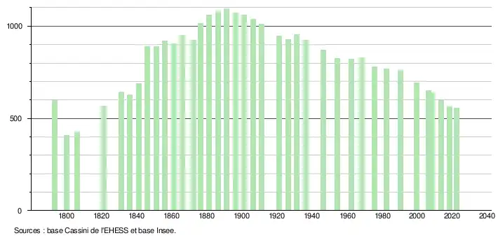 ↑ Population municipale de référence en vigueur au 1erjanvier2025, millésimée 2022, définie dans les limites territoriales en vigueur au 1erjanvier2024, date de référence statistique: 1erjanvier2022.