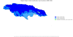 Le climat de la Jamaïque est tropical, avec un temps chaud et humide, bien que les terres aient un climat plus tempéré. Les précipitations sont très inégales d’une région à l’autre — le nord-est plus exposé — et sont plus abondantes de juin à décembre. Des risques de cyclone tropical pèsent sur l'île à la fin de l’été et au début de l'automne.