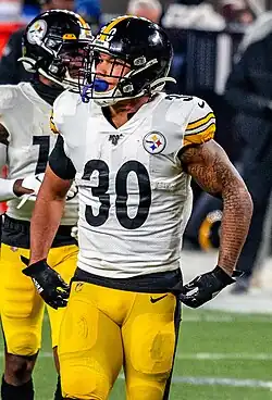 - ↑ (en-US) « Pittsburgh RB James Conner announces he is cancer-free », sur NFL.com (consulté le ).
