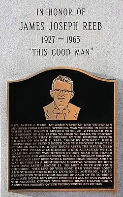 - 1 2 3 Seaburg, Alan. "James Joseph Reeb." James Joseph Reeb, Unitarian Universalist History & Heritage Society, 12 janvier 2012, uudb.org/articles/jamesjosephreeb.html.