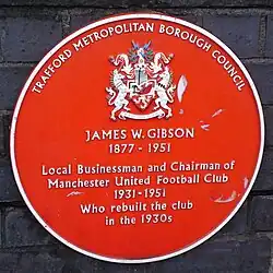 À la différence de Gibson, Manchester United FC est très affecté par la Grande Dépression. Leur propriétaire précédent, John Henry Davies est mort en 1927. Gibson injecte autour de 40 000 livres sterling dans l'équipe pendant la Grande Dépression. Il a aussi financé la reconstruction de Old Trafford et a commencé la United Youth Academy. À la fin de la Seconde Guerre mondiale, il a nommé Matt Busby comme manager, mais il n'a pu voir que la victoire en FA Cup 1948, il meurt en 1951, avant l'émergence des Busby Babes.
