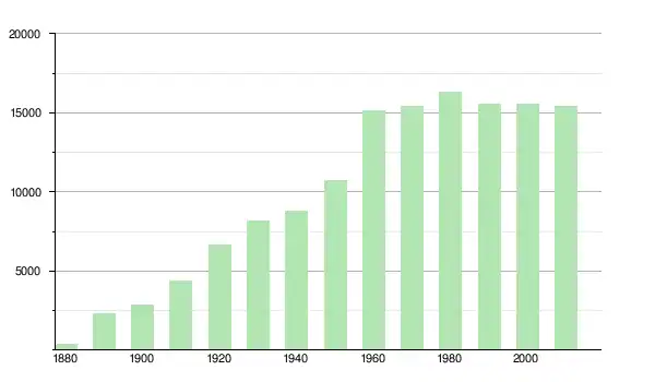 | 1990 | 15 571 | ▼ −4,36 % | |